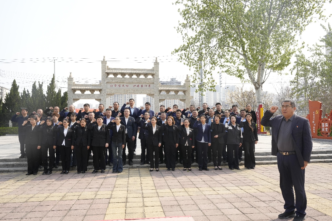 在張總的帶領(lǐng)下,全體人員面向鮮紅的黨旗重溫入黨誓詞,鏗鏘有力的誓言回蕩在烈士陵園上空,彰顯著全體人員不忘初心、牢記使命、勇?lián)姑膱?jiān)定信念。